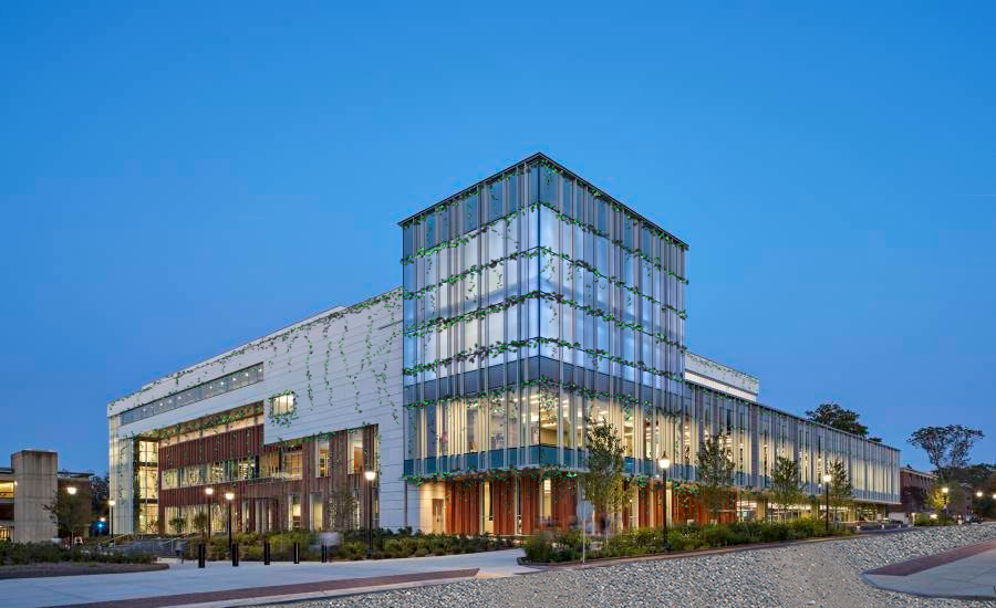 Image of the UConn Rec Center with vines growing.