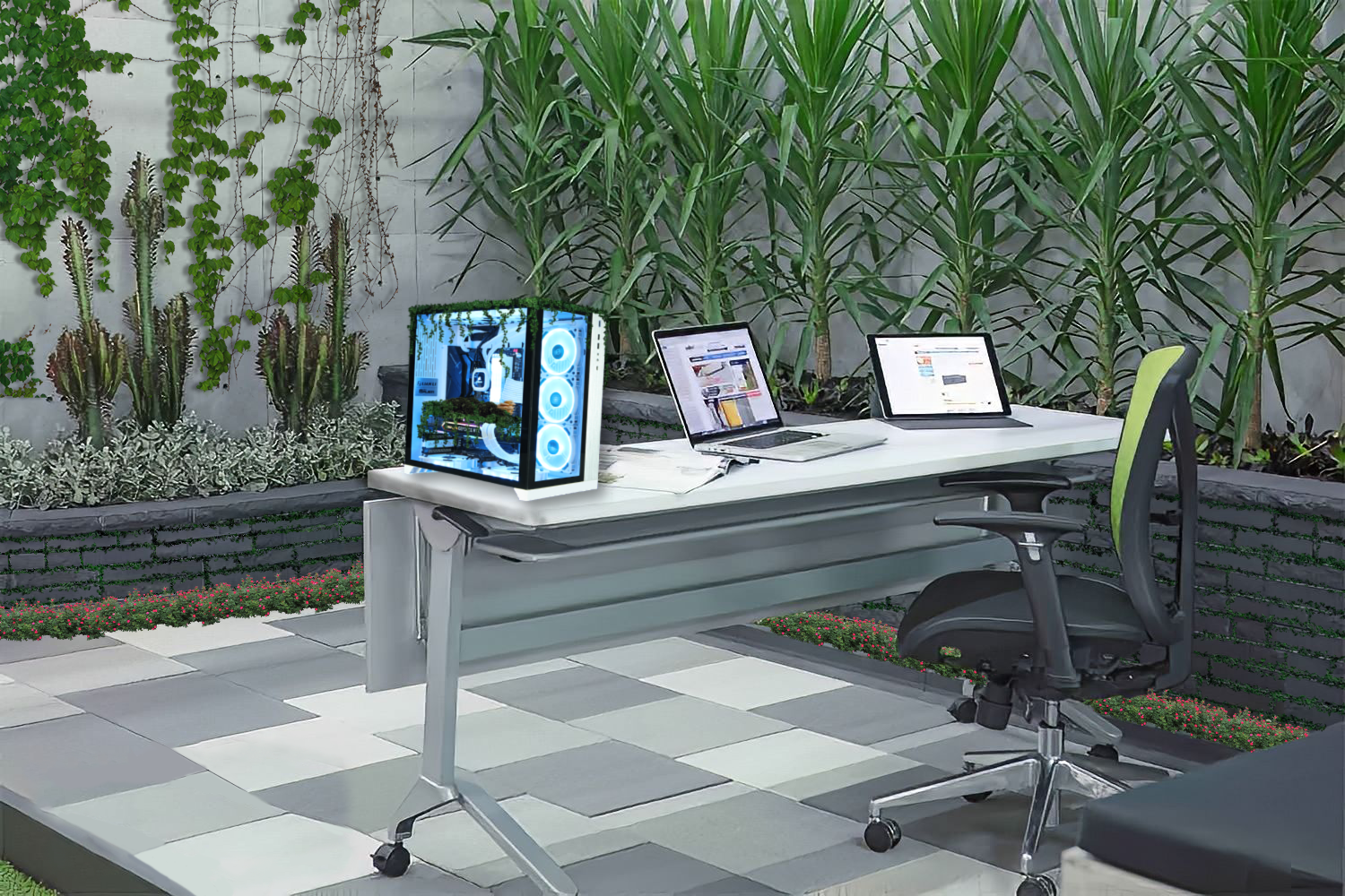 Image of pc with vines growing throughout it.